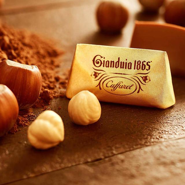 ジャンドゥーヤチョコレートはカファレルが世界で初めて発明し、1869年にイタリア王室の御用達になりました。イタリア・ピエモンテ産のヘーゼルナッツペーストを28%も含む、くちどけなめらかで香り豊かなチョコレートです。