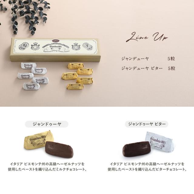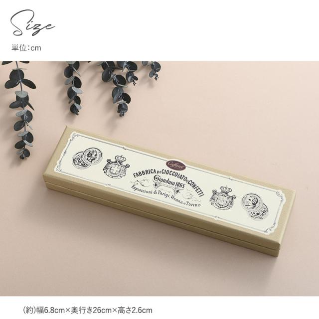 ベルベッドのような滑らかな舌触りが特徴のジャンドゥーヤ。イタリアらしいクラシックなパッケージに、ジャンドゥーヤとジャンドゥーヤビターをアソートしたチョコレートボックスです。上品なパッケージは贈る人を選ばず、男性へのプレゼントにもご自身へのご褒美にもおすすめです。