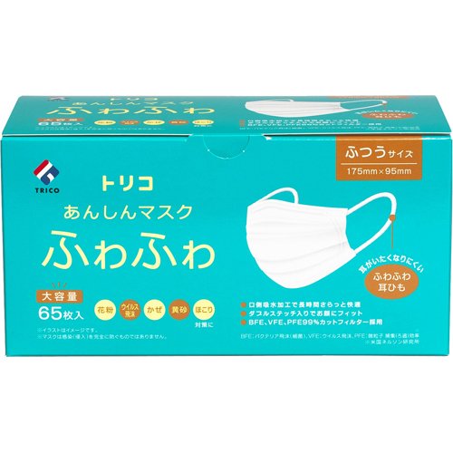 トリコ あんしんマスクふわふわ ふつうサイズ(65枚入)[不織布マスク]