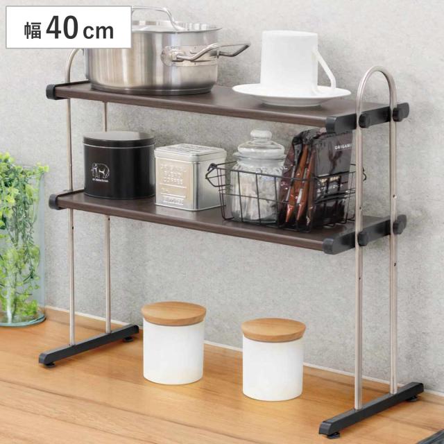 キッチンラック 2段 幅40cm モクメタル ( 木目 キッチン ラック 棚 収納ラック 収納棚 調味料ラック スパイスラック オープンラック 木目調 二段 キッチン用ラック キッチン収納 おしゃれ )