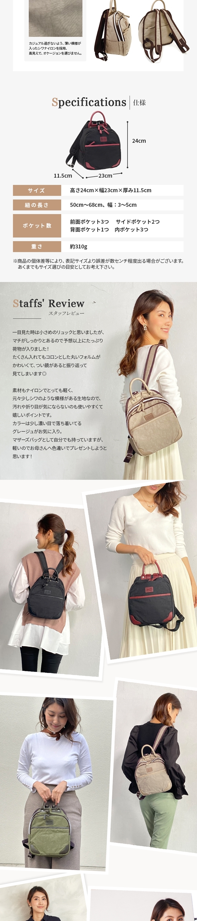 - 画像では腰より少し上くらいに見えましたが、背負ってみると思ったより上になってしまいちょっと残念。