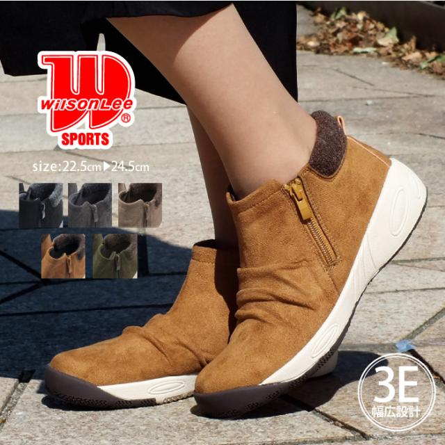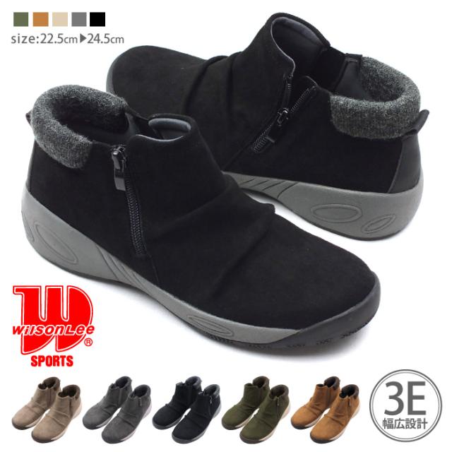 WILSON LEE SPORTS ウィルソンリースポーツ リブニットショートブーツ アンクルブーツ コンフォート 3E 幅広設計 軽量 防水設計 防滑 滑りにくい サイドゴア サイドファスナー 痛くない おしゃれ プレゼント ギフト 4022