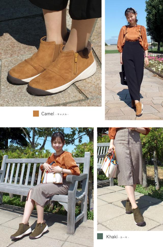 ウォーキングシューズのようなソールを合わせたサイドゴアショートブーツ