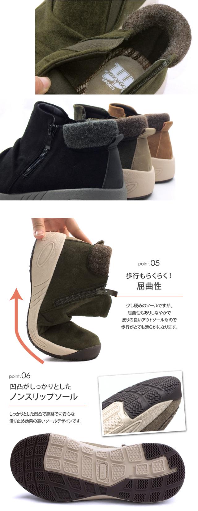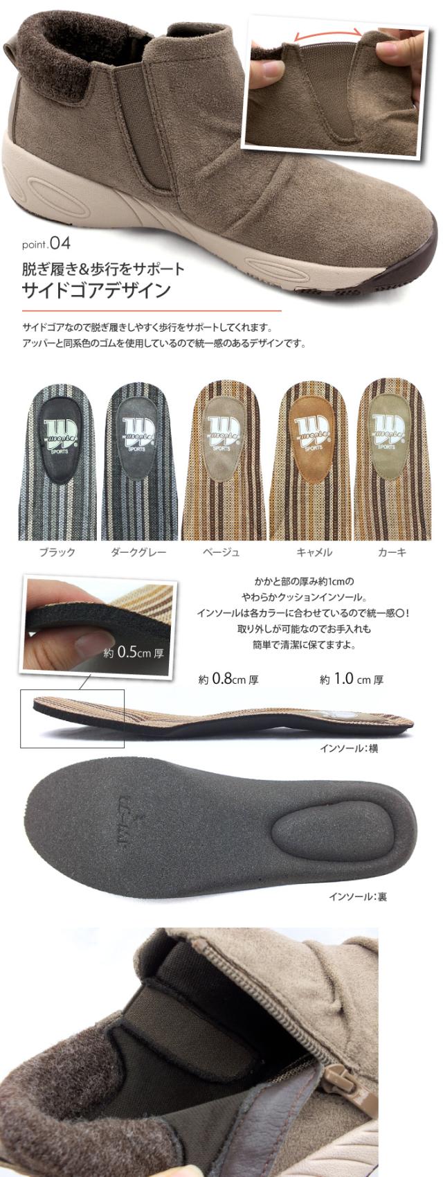 WILSON LEE SPORTS-ウィルソンリースポーツ-“足にやさしく(SOFT&FIT)”をコンセプトに、快適性を追求するシューズブランド。アッパーには上質なスウェードを採用!どんなスタイルにも合わせられる履きまわしの良さが◎ウォーキングシューズのようなソールを合わせたサイドゴアショートブーツ。内側にはサイドゴアデザインなので歩行をサポートしてくれ、外側にサイドファスナーが施されているので脱ぎ履きがらくちん!インソールは取り外しが可能で、お手入れもでき清潔に保てます。屈曲性抜群のしなやかで反りの良いアウトソールなので歩行がとても滑らか。接地面から4cmは防水設計で4時間耐久!