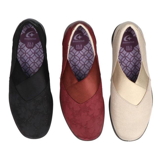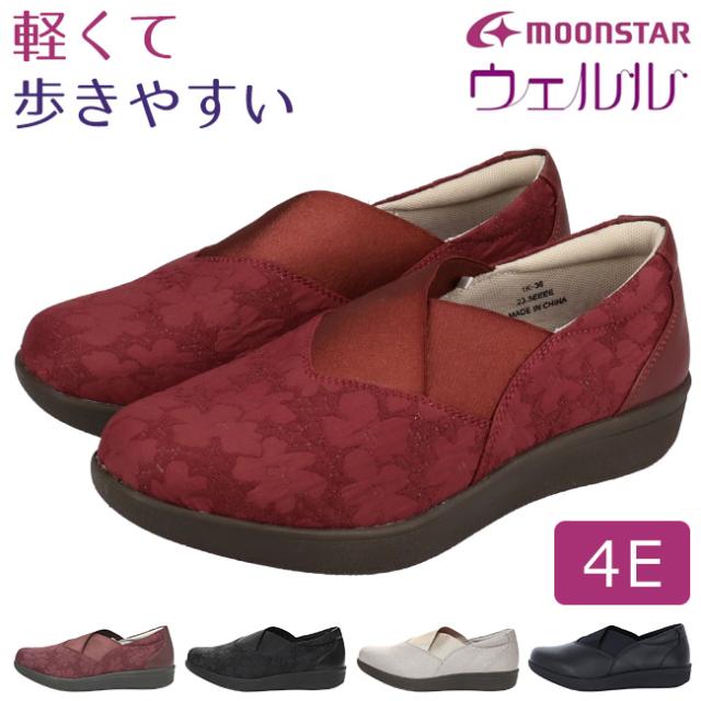 ムーンスター ウェルル01 スリッポン コンフォートシューズ レディース 高齢者 4E 幅広 歩きやすい 疲れない 履きやすい 軽量 スニーカー シニア 介護靴 リハビリ シューズ 靴