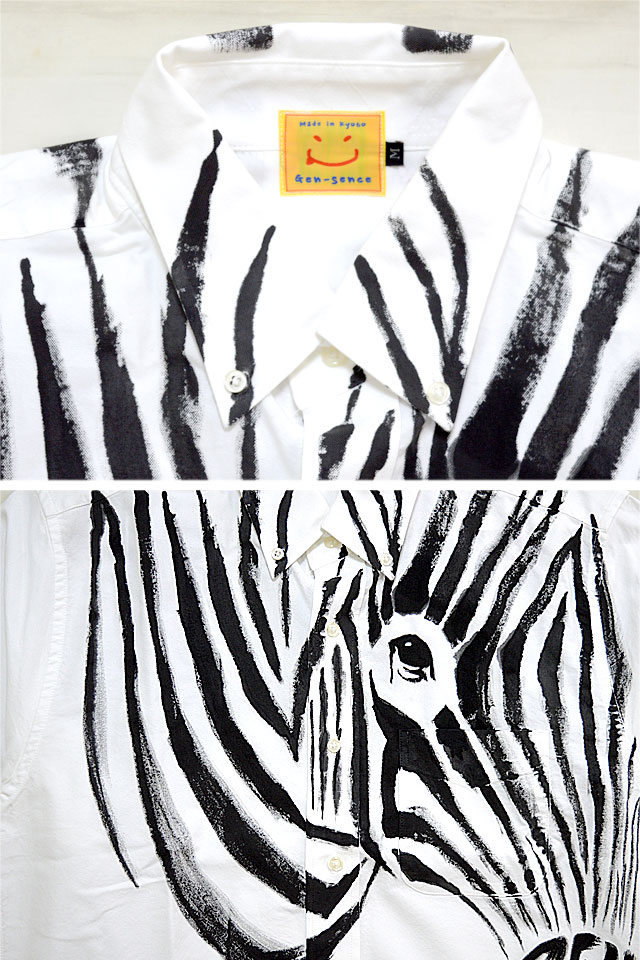 この道40年以上の「ぬれ描き友禅作家・碧三」が魅せる上品で繊細さが特徴の碧(あお)より「手描きシマウマオックス長袖シャツ」のご紹介です。 清潔感のあるボタンダウンシャツにひとつひとつ手描きで絵柄を落とし込み、手作りの和柄長袖シャツを完成させました。 今回モチーフの主役に採用されたのはシマウマ。 フロント左胸にはポケットを縫い付けました。 ボディーには、軽い着心地の綿100%のシャツ生地を採用。 ※色落ちしない様に加工を施してありますが、摩擦に弱いため、お洗濯は手洗いやネットに入れて優しくお取り扱いをお願い致します。 | ||||||||||||||||||||