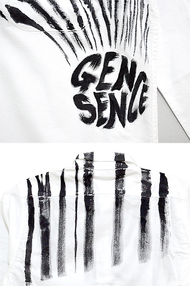 清潔感のあるボタンダウンシャツにひとつひとつ手描きで絵柄を落とし込み、手作りの和柄長袖シャツを完成させました。