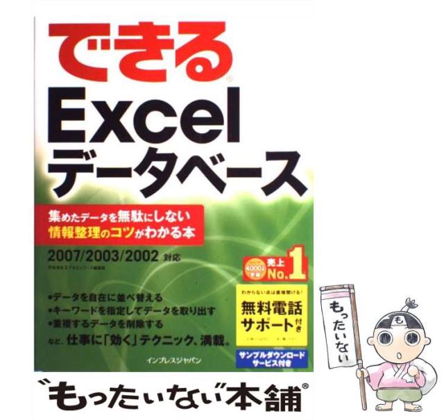 商品名:【中古】 できるExcelデータベース 集めたデータを無駄にしない情報整理のコツがわかる本 2007/2003/2002対応 / 早坂清志 できるシリーズ編集部 / インプレスジャ [単行本]【メール便送料無料】