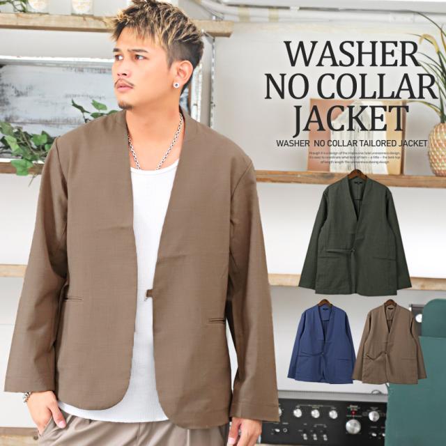 セール SALE 56%OFF テーラードジャケット メンズ ノーカラー ワッシャー加工 秋新作【ワッシャーノーカラーテーラードジャケット】 aa-1044