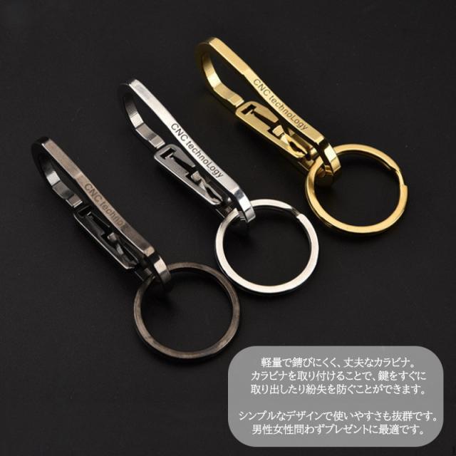 カラビナ キーホルダー 60mm [チタン風] ステンレス おしゃれ かわいい 軽量 高強度 アウトドア 山 キーチェーン 金具 車 家 鍵 送料無料