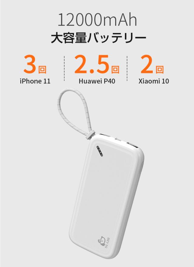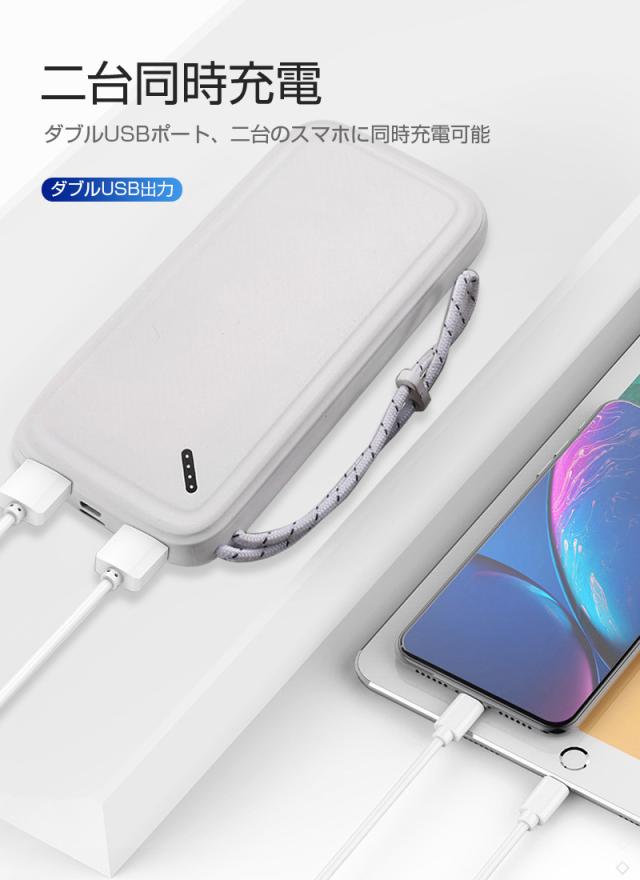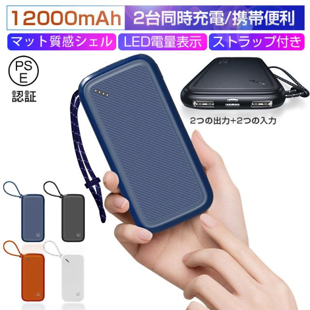 モバイルバッテリー 12000mAh大容量 スマホ充電器 2台同時充電 LEDランプ電量表示 軽量 薄型 ストラップ付き 送料無料 防災電源 iPhone17/iPhoneAir対応 【PL保険加入済み製品・安心】