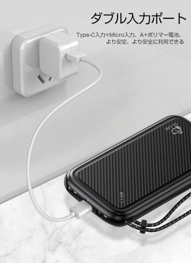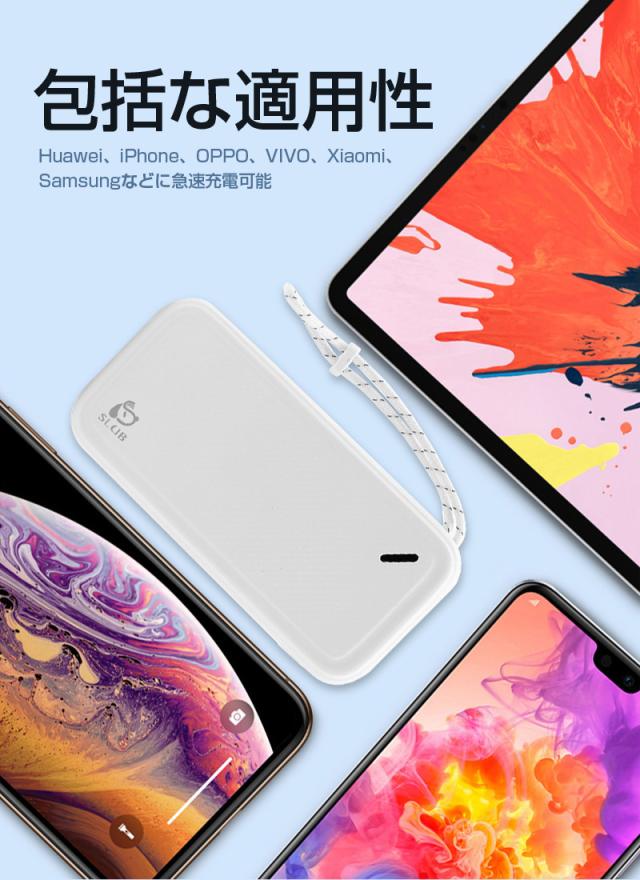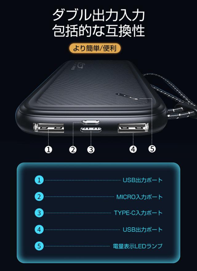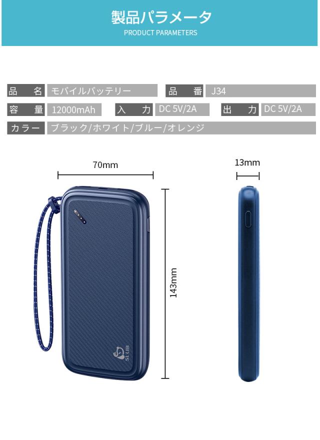 ブラック、ブルー、ホワイト、オレンジの4色がありますので、好みに合わせて選択ができます。【パッケージ内容】モバイルバッテリー、日本語取扱説明書、USBケーブル
