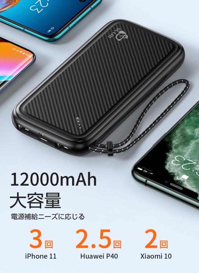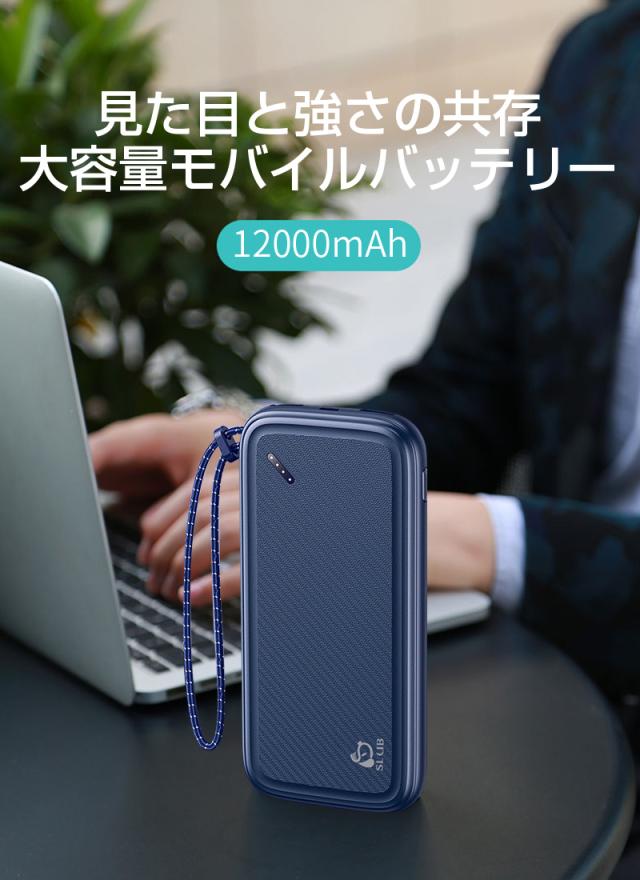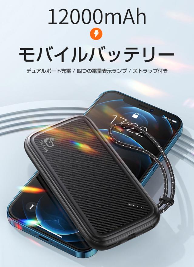 モバイルバッテリー 12000mAh パワーバンク iPhone17/16/15充電 防災電源 充電器 電量表示 薄型 Micro入力 Type-C入力 2台同時充電 5V/2A 予備電源 PSE認証済 【PL保険加入済み製品・安心】