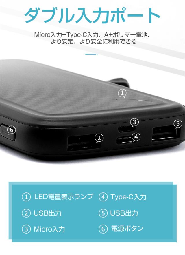 ●モバイルバッテリーへの充電はType-CとMicro USBで可能です。