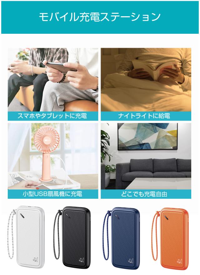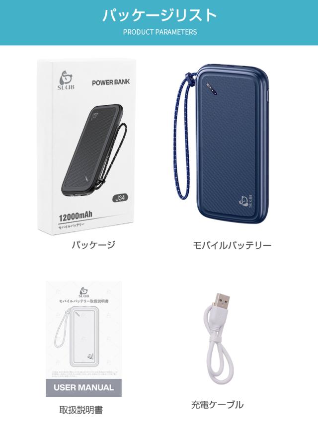 【パッケージ内容】モバイルバッテリー、日本語取扱説明書、USBケーブル