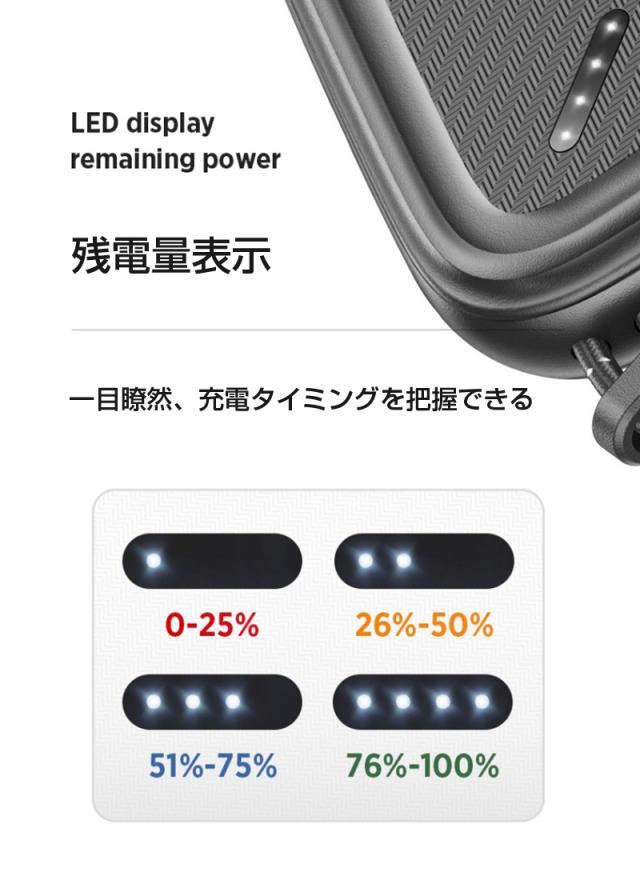 ●LEDランプでバッテリー残量確認:4段階のLED表示により、バッテリーの残量を一目で確認することができます。