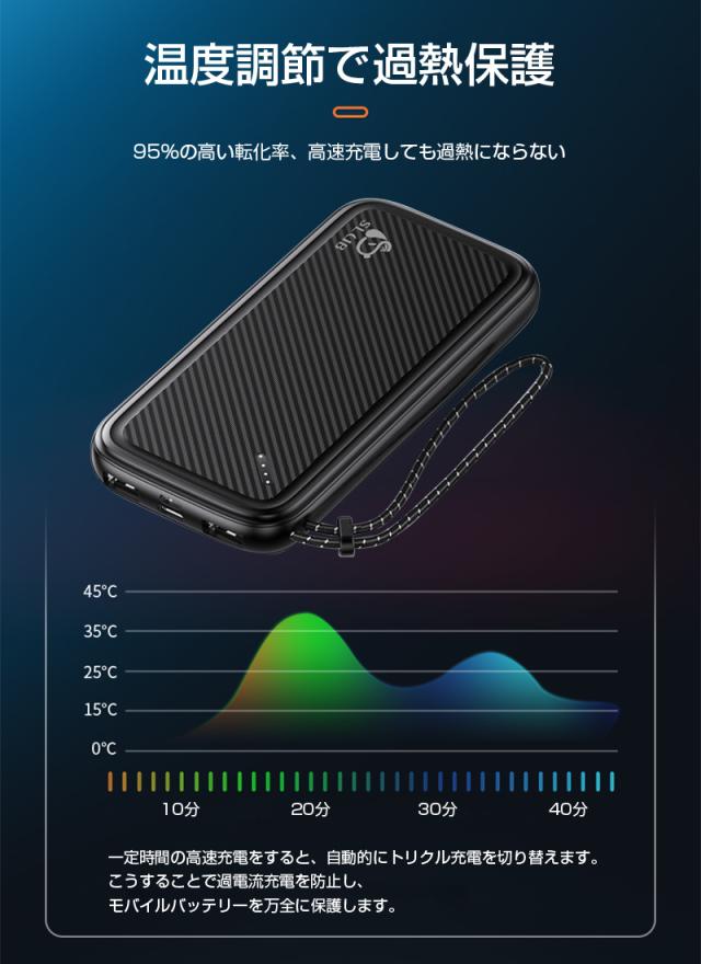 ●スマートチップがデバイスを自動判別し、電流をコントロールできる多重保護機能を搭載したモバイルバッテリーです。