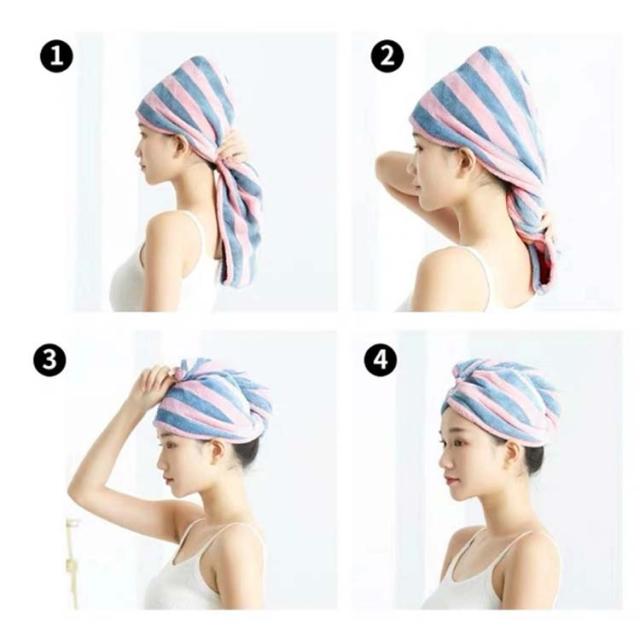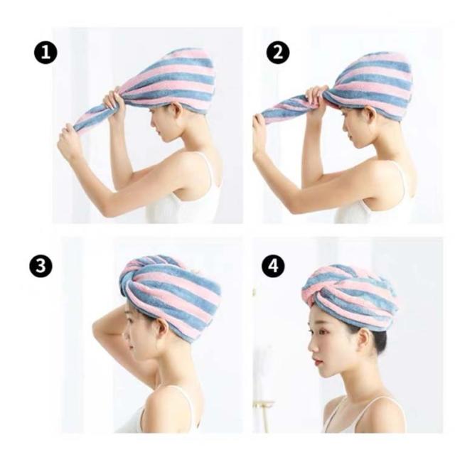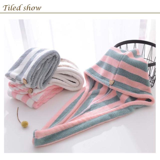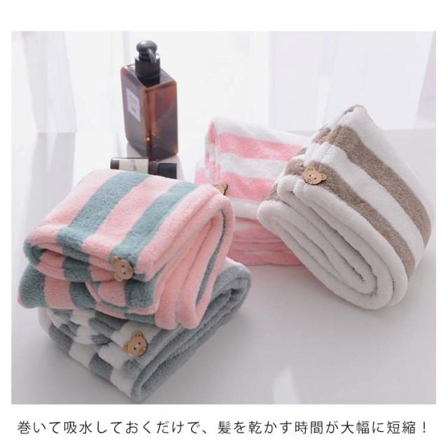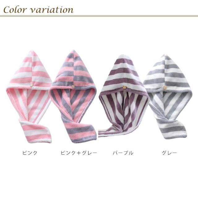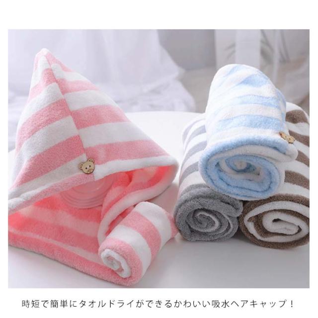 ヘアキャップ ヘアドライタオル 1枚 吸水 ヘアタオル 速乾 髪用タオル ドライキャップ ヘアバンド ドライヤー バスタオル ボーダー柄 マイクロファイバー お風呂 バス用品 温泉 タオルキャップ ふわふわ 柔らかい ソフト 送料無料 レディース ヘアケア かわいい おしゃれ