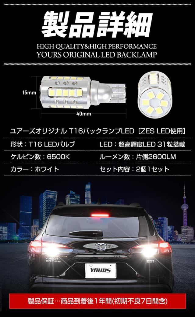 [対象商品タイムセール10%OFF]カローラクロス 専用 バックランプLED T16 2600LM 2個1セット バックライト COROLLA CROSS 6500K トヨタ ZESチップ リア テール
