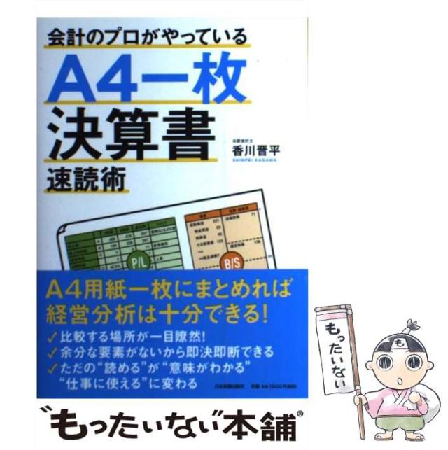 商品名:【中古】 会計のプロがやっているA4一枚決算書速読術 / 香川晋平 / 日本実業出版社 [単行本]【メール便送料無料】