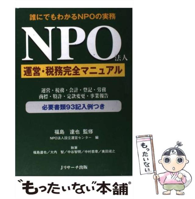 【中古】 NPO法人運営・税務完全マニュアル 誰にでもわかるNPOの実務 / 福島達也、NPO法人設立運営センター / Jリサーチ出版 [単行本]【メール便送料無料】