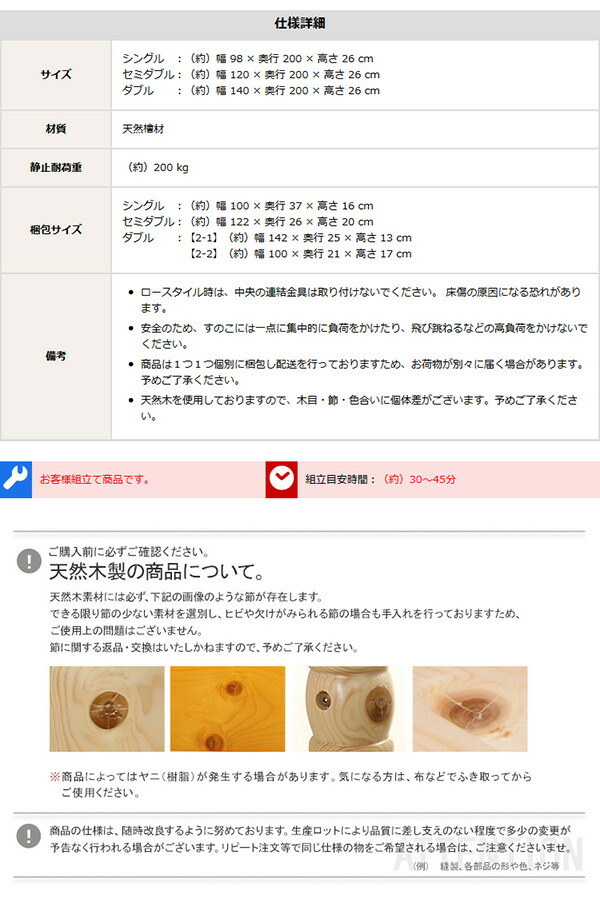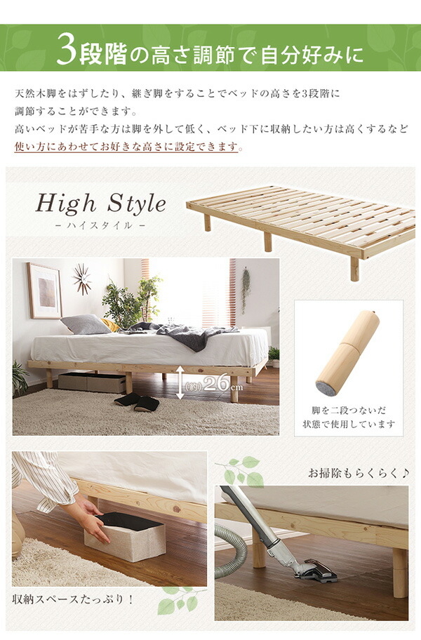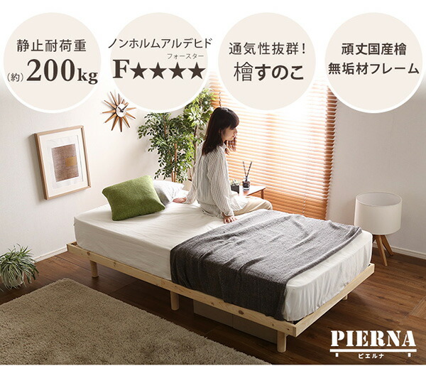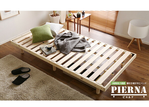 すのこベッド シングル 総檜脚付き Pierna-ピエルナ- 木製ベッド ベッドフレーム 北欧 代引/同梱不可