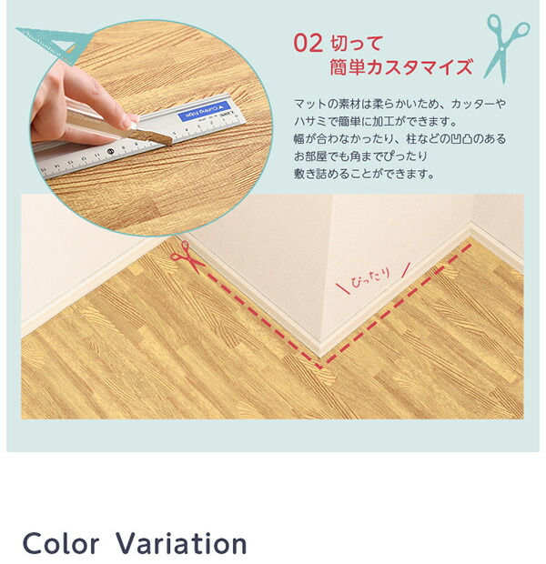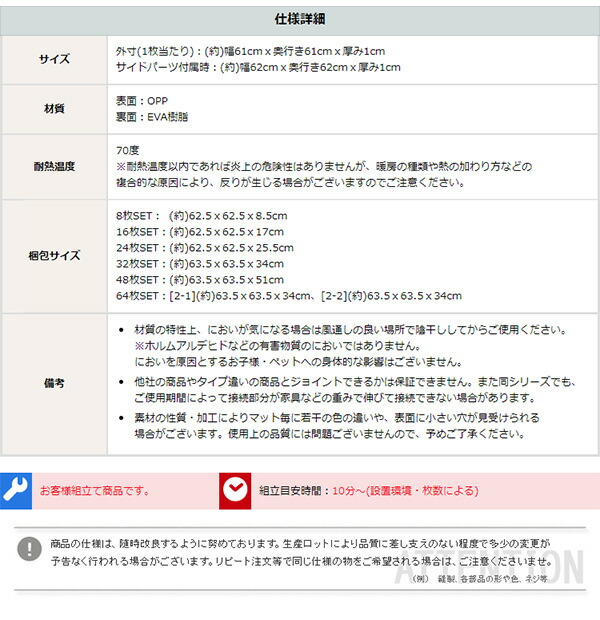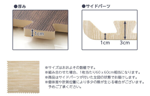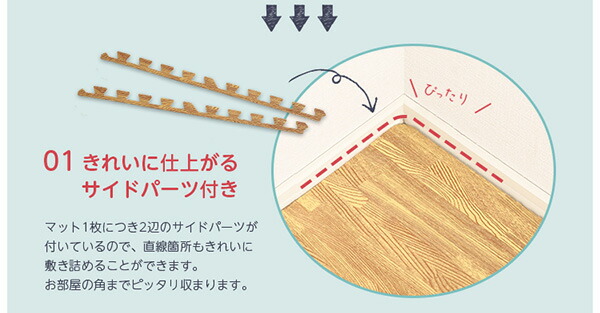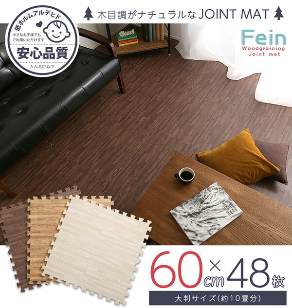 サイドパーツ付き!ナチュラルな木目調ジョイントマット 48枚セット(大判60cm)安心の低ホルムアルデヒド、防音、保温 Fein-ファイン-代引不可