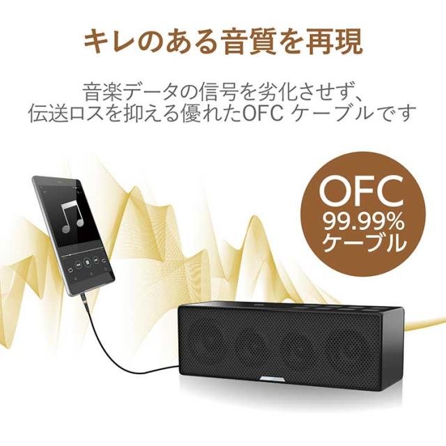 断線に強い高耐久タイプ。 スマートフォンやタブレット、音楽プレーヤーの音楽をスピーカーやカーステレオで再生する高耐久タイプのオーディオφ3.5AUXケーブル。■対応機種:φ3.5mmステレオミニジャック搭載のスピーカー・ヘッドフォン・カーナビ・カーステレオおよびφ3.5mmステレオミニジャック搭載のスマートフォン・ポータブルオーディオプレーヤーなど ■コネクタ形状1:φ3.5mm 3極ミニプラグ(L字) ■コネクタ形状2:φ3.5mm 3極ミニプラグ(ストレート) ■プラグメッキ仕様:金メッキ ■カラー:ブラック ■長さ:1.0m ■環境配慮事項:EUの「RoHS指令(電気・電子機器に対する特定有害物質の使用制限)」に準拠(10物質)
