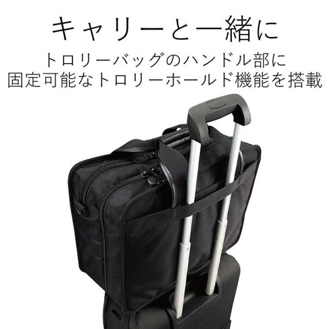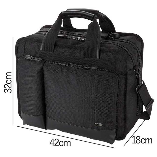 モバイルプリンタとノートPCを大事に一緒に持ち運び!セキュリティ機能が付いたモバイルプリンタ収納キャリングバッグ。■バッグタイプ:カジュアルバッグ ■持ち運びタイプ:2WAY(ショルダー+手提げ) ■主素材タイプ:生地(ポリエステル) ■気室数:2気室 ■外形寸法:バッグ本体:幅420mm×奥行180mm×高さ320mm ※取手含まず、付属インナーケース:幅350mm×奥行90mm×高さ220mm、付属アクセサリポーチ:幅350mm×奥行80mm×高さ100mm ■内寸:バッグ本体:幅390mm×奥行65mm×高さ290mm、幅390mm×奥行90mm×高さ290mm、付属インナーケース:幅345mm×奥行85mm×高さ200mm、付属アクセサリポーチ:幅345mm×奥行75mm×高さ95mm ■PC収納部内寸:幅385mm×奥行45mm×高さ280mm ※内寸と収納できるパソコンの外寸は異なる場合がございます。詳しくはエレコムホームページの対応表でご確認ください。 ■ロック機能:パソコン収納部にダイヤル錠(3桁) ■カラー:ブラック