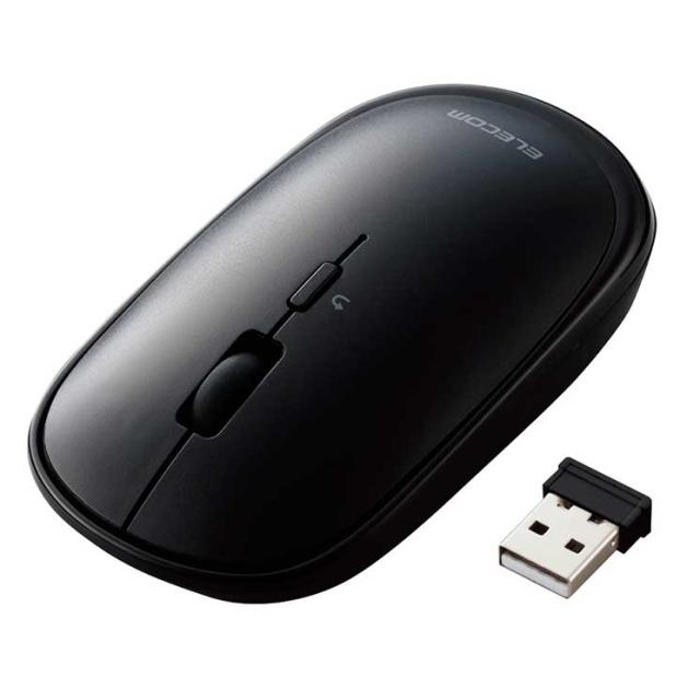 エレコム ワイヤレスマウス BlueLED 無線 ( USB 2.4GHz ) 4ボタン 薄型 モバイルマウス 収納ポーチ付き 割り当て機能 レシーバー収納付 ブラック ELECOM