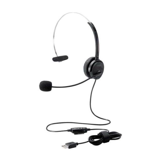 エレコム ヘッドセット 片耳 有線 オーバーヘッド USB 接続 テレワーク WEB会議 オンライン授業 ブラック ELECOM