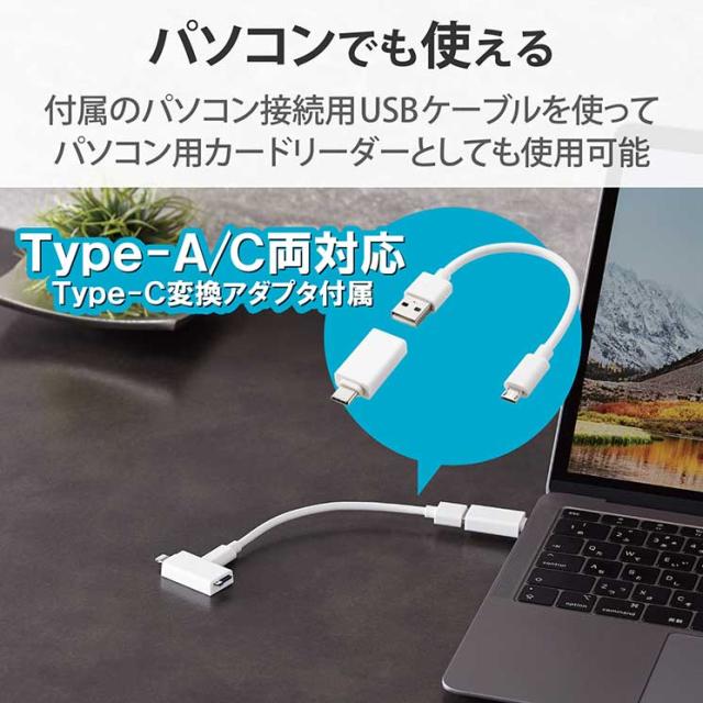 エレコム Lightningカードリーダー メモリーカードリーダー Lightningコネクタ マイクロSD Type-C変換アダプタ付 iPhone コンパクト ストラップホール付 ホワイト ELECOM