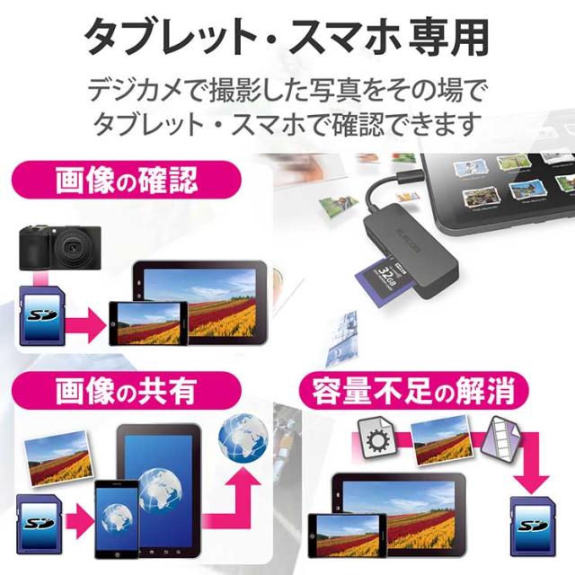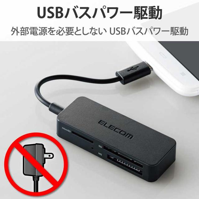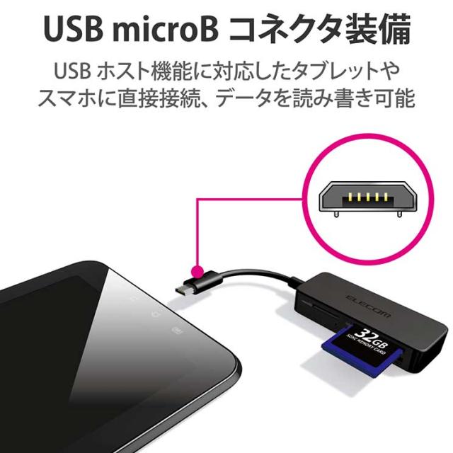 エレコム メモリリーダライタ スマホ・タブレット用 microBケーブル SD+microSD+mS対応 ブラック ELECOM
