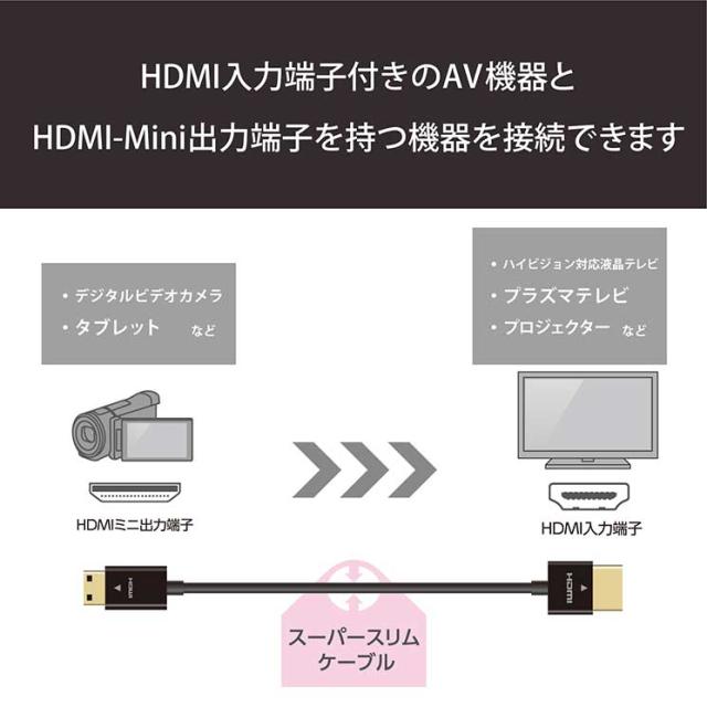 エレコム HDMIケーブル イーサネット対応 スーパースリム mini 1.0m ブラック ELECOM