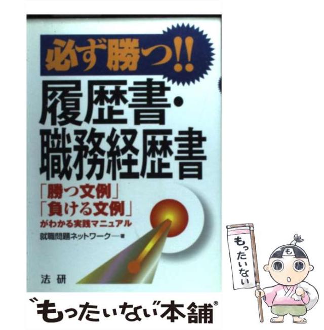 商品名:【中古】 必ず勝つ!!履歴書・職務経歴書 「勝つ文例」「負ける文例」がわかる実践マニュアル / 就職問題ネットワーク / 法研 [単行本]【メール便送料無料】
