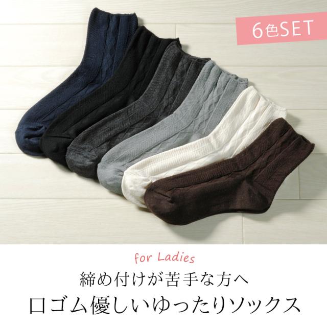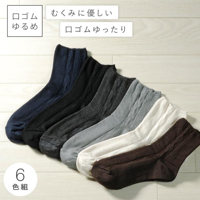 履き口 ゆったり 靴下 まとめ買い レディース 【6色組】22-25cm モノトーン 【 口ゴムなし みたいな履き心地】 足首 ゆるい ゆるめ 口ゴムゆったり 締め付けない むくみ 介護 高齢者 シニア 足のむくみ 口ゴムゆったりベーシックレディースソックス 跡がつかない