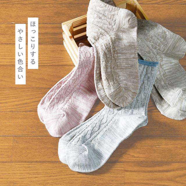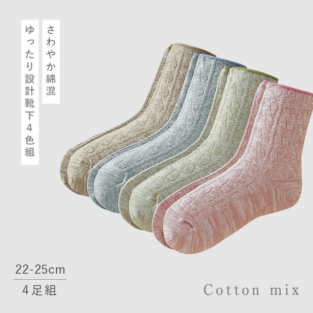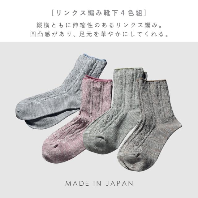 リンクス編みの綿混ソックス4色組。さわやか綿混のほっこりするやさしい色合い。