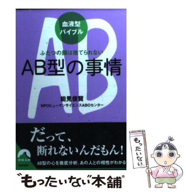 【中古】 AB型の事情 ふたつの顔は捨てられない 血液型バイブル (青春文庫) / 能見俊賢 ヒューマンサイエンスABOセンター、血液型人間科学研究センター / 青春 [文庫]【メール便送料無料】