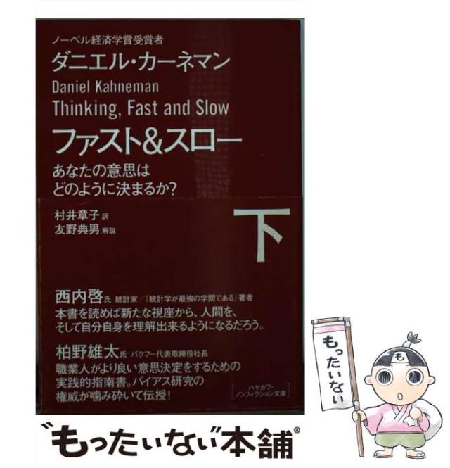 商品名:【中古】 ファスト&スロー あなたの意思はどのように決まるか? 下 (ハヤカワ文庫 NF 411) / ダニエル・カーネマン、村井章子 / 早川書房 [文庫]【メール便送料無料】