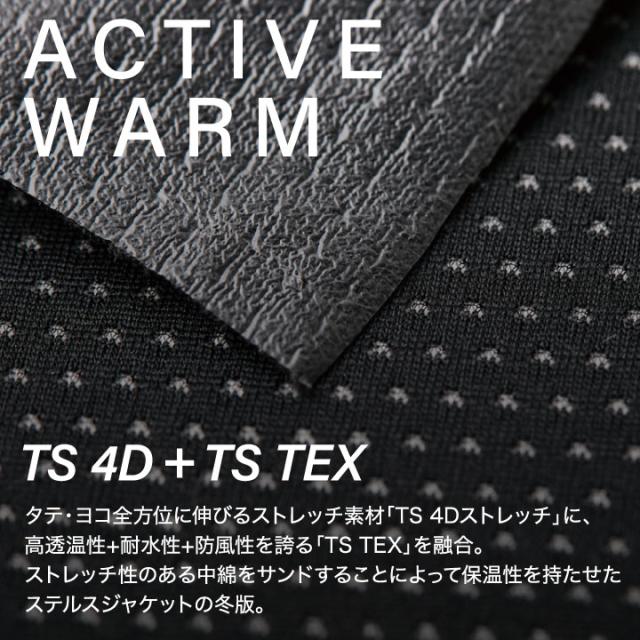 タテ・ヨコ全方位に伸びるストレッチ素材「TS 4Dストレッチ」に、高透温性+耐水性+防風性を誇るTS独自の特殊フィルム「TS TEX」を融合。