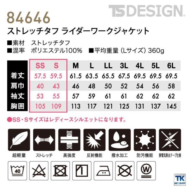 84646 TS DESIGN 藤和 ストレッチ ジャケット ブルゾン ジャンパー 軽量 肩補強 肘補強 撥水加工 反射プリント付 カジュアル オールシーズン 年間 男性 女性 メンズ レディース TOWA