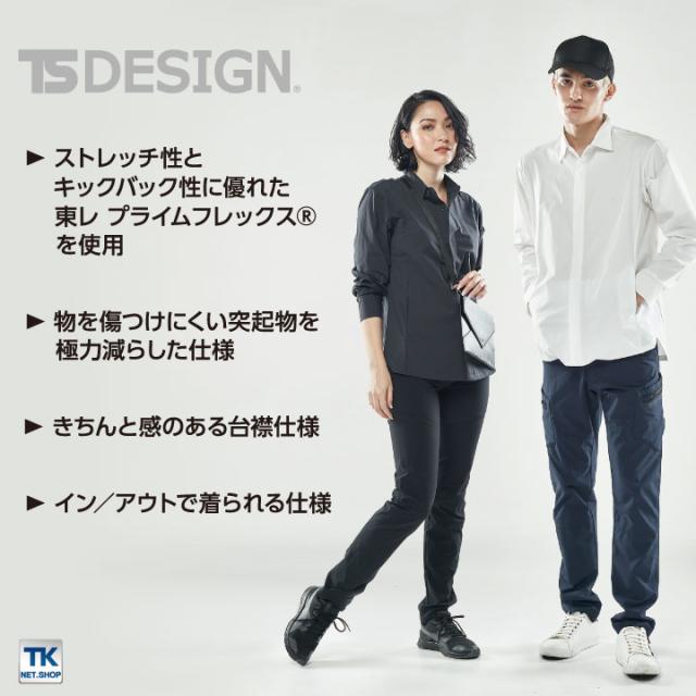 TS DESIGN ロングスリーブシャツ 長袖 ストレッチ 東レ プライムフレックス R 軽量 吸汗速乾 カジュアル 作業服 作業着 メンズ レディース 男女兼用 SSから6L オールシーズン TOWA 営業 仕事着 無地 年間 スーツ フォーマル 春夏 秋冬 tw-9205