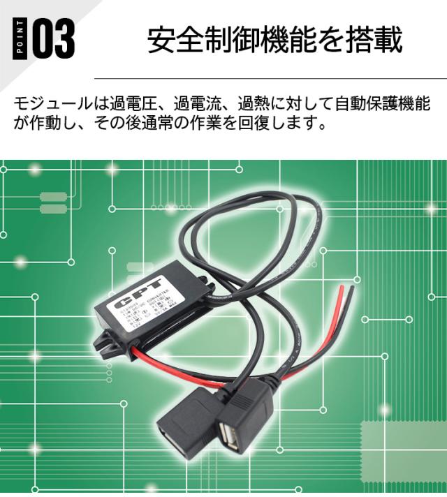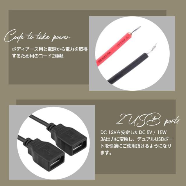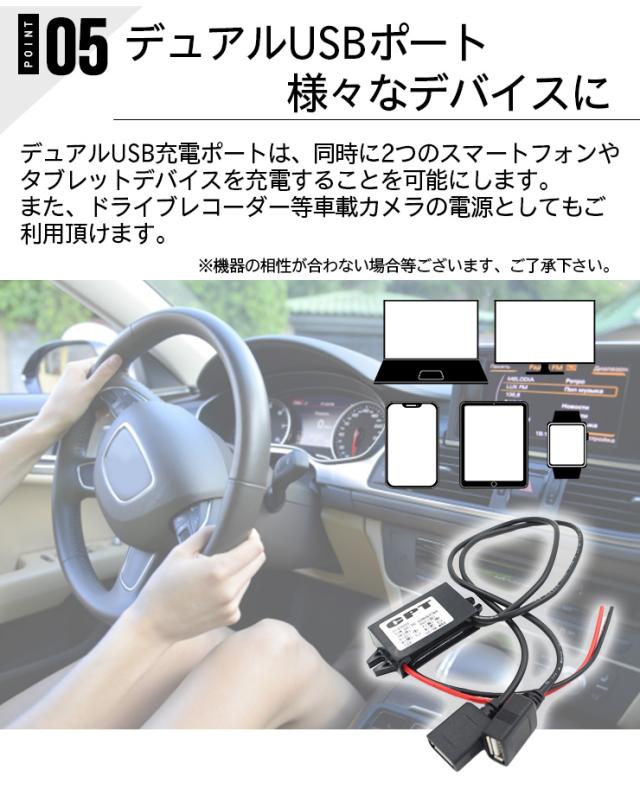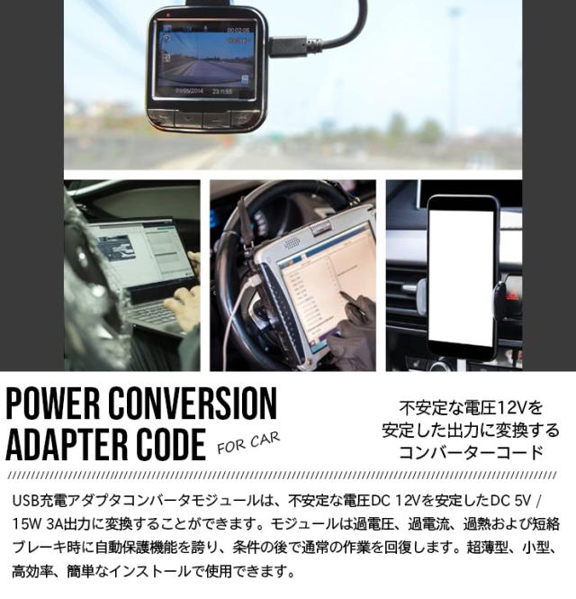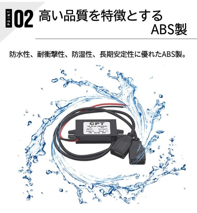 車用電力変換器 変換アダプタコード DC 12V→5V USB充電器 防水性 耐衝撃性 acアダプター 12v