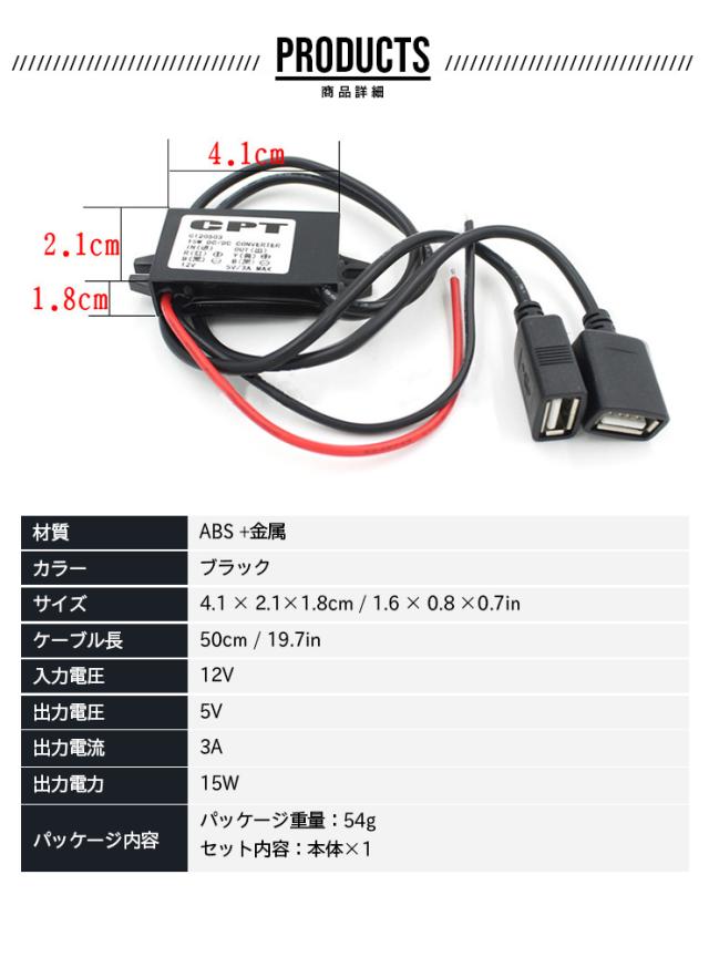 【車用電力変換器12V→5V】USB充電アダプタコンバータモジュールは、不安定な電圧DC 12Vを安定したDC 5V / 15W 3A出力に変換することができます。モジュールは過電圧、過電流、過熱および短絡ブレーキ時に自動保護機能を誇り、条件の後で通常の作業を回復します。超薄型、小型、高効率、簡単なインストールと使用です。【品質のある素材】防水性、耐衝撃性、防湿性、長期安定性、信頼性の高い品質を特徴とするABS製ハウジングです。デュアルUSB充電ポートは、同時に2つのスマートフォンやタブレットデバイスを充電することを可能にします。