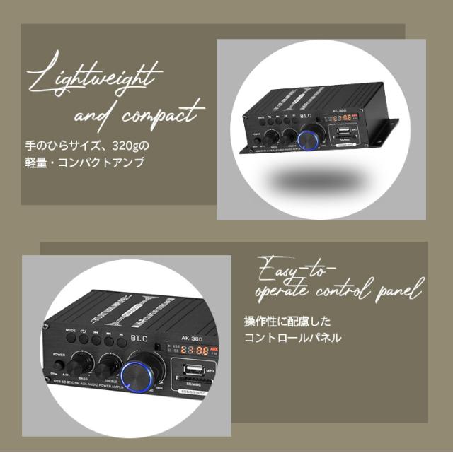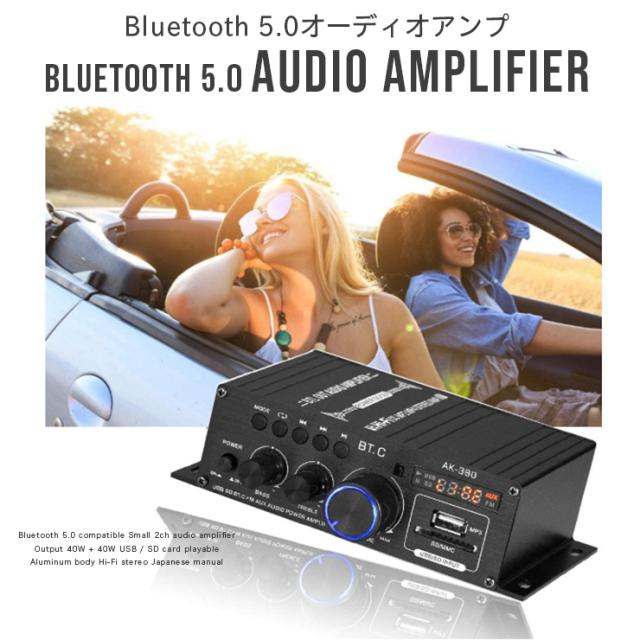 Bluetooth5.0対応 小型2chオーディオアンプ 出力40W+40W USB/SDカード再生可 アルミボディ Hi-Fiステレオ 日本語説明書