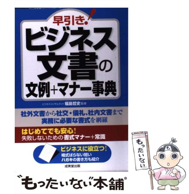 商品名:【中古】 早引き! ビジネス文書の文例+マナー事典 / 福島 哲史 / 成美堂出版 [単行本(ソフトカバー)]【メール便送料無料】