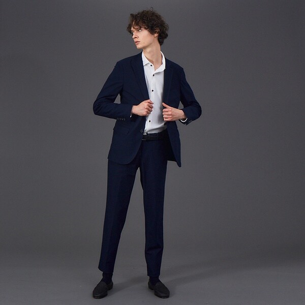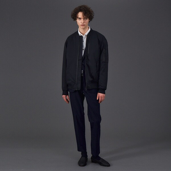合わせるインナー次第でプライベートからビジネスシーンまで活躍するため、同素材でのセットアップスタイルがオススメです。