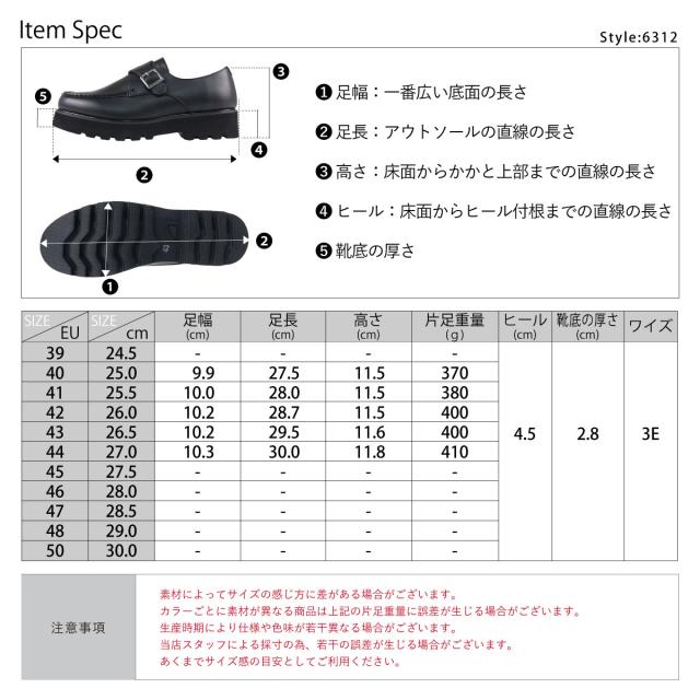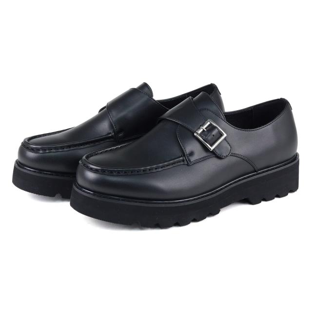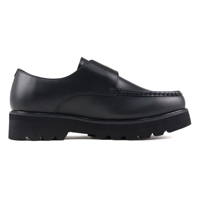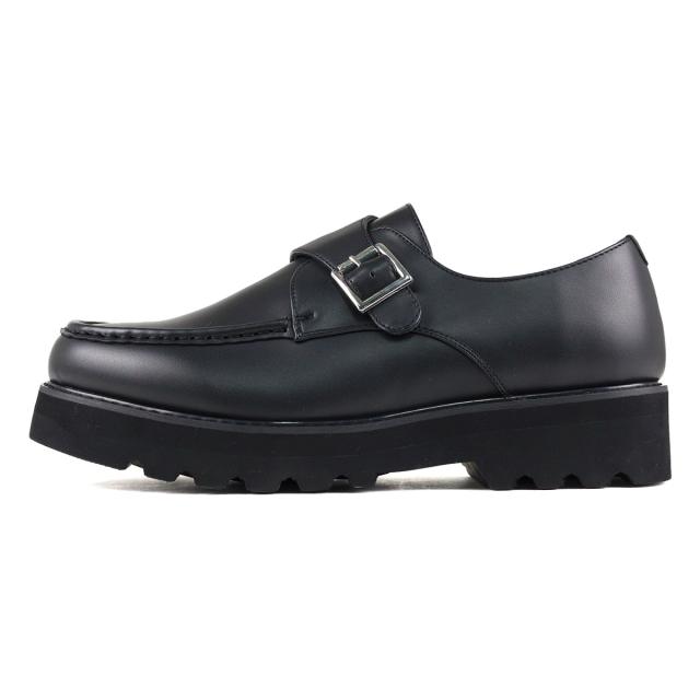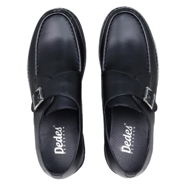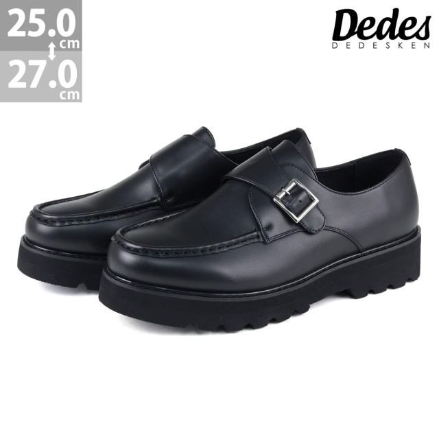 カジュアルシューズ メンズ Uチップモカ モンクストラップ 靴 ベルト ボリュームソール 脚長 4.5cmヒール No.6312 25.0cm〜27.0cm 黒 ブラック Dedes デデス