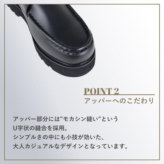 ソールはハイソールを選定したことで、約4.5?pの高さがあり自然な脚長効果を発揮。