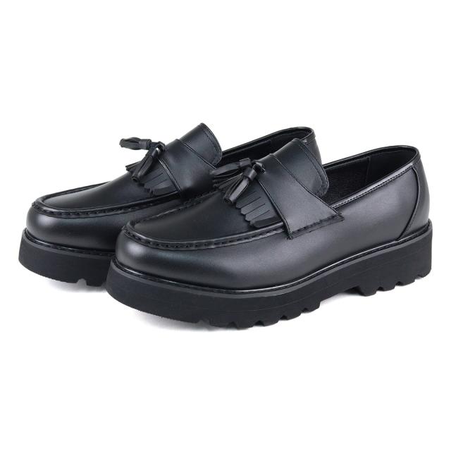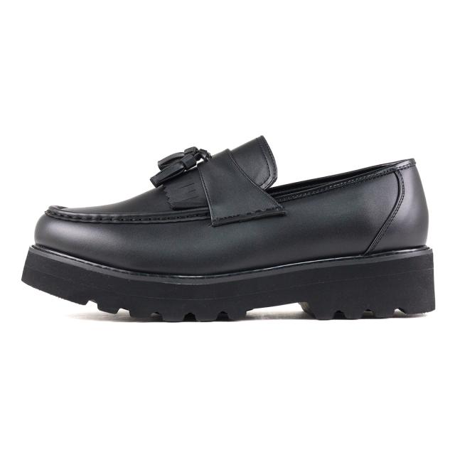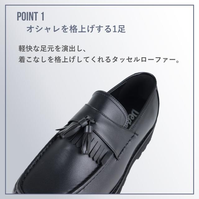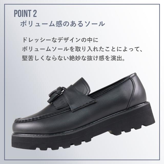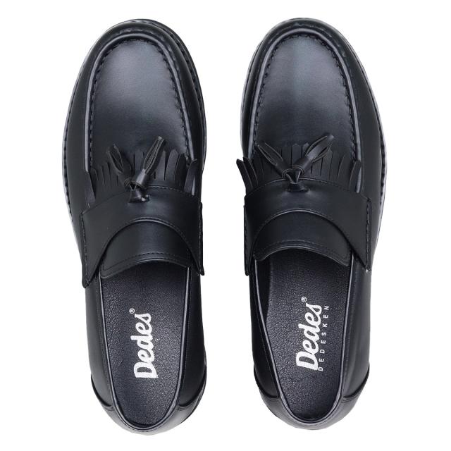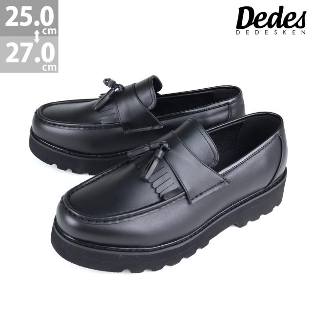 ローファー メンズ タッセルローファー 飾り ドレスシューズ 脚長 厚底 ボリュームソール 4.5cmヒール No.6313 25.0cm〜27.0cm 黒 ブラック Dedes デデス